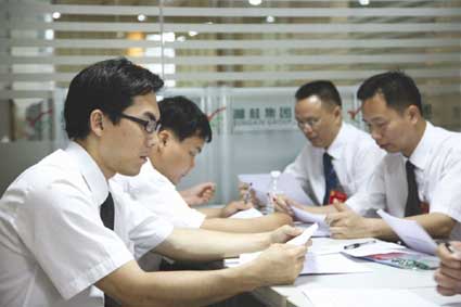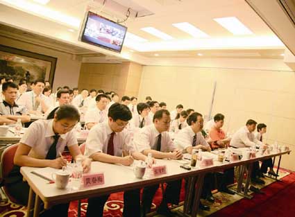 湘桂集团党委组织总部全体人员学习十七大四中全会精神。